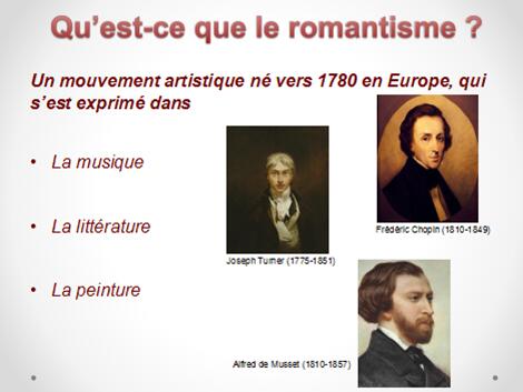 带着这么多的问题,都琳女士开始了她充满魅力的演讲,第一部分,她讲解了浪漫主义到底是指什么?浪漫主义运动的历史沿革。早在1780年,一场欧洲兴起在音乐、文学,绘画方面的艺术运动拉开了浪漫主义的帷幕,随之在建筑、舞蹈和诗歌方面都体现出一种浪漫主义的情绪,首先是在德国,继而在英国,意大利传播,而法国则是在大革命之后得到发展,它主要表现为挑战传统因循守旧的习俗,提倡用感性代替理性、情感代替功利、激情挑战陈规、梦想取代现实、追求标新立异取代因循守旧、现代化取代旧传统等一系列变革,随之,随着艺术层面的变革又引发了人们在精神层面上的提升,追求个性的自由,崇尚自然。期间她用生动了例子和各个时代的代表人物,做了全面的讲解。